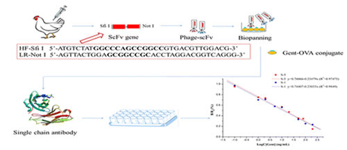 針對(duì)抗生素殘留檢測(cè)的新技術(shù)平臺(tái),面對(duì)藥物殘留檢測(cè)的巨大需求和不斷增長(zhǎng)的技術(shù)發(fā)展需要,西北農(nóng)林科技大學(xué)動(dòng)物藥學(xué)團(tuán)隊(duì)(陜西省獸用生物制品與新獸藥研究國(guó)際科技合作基地)經(jīng)過(guò)多年努力,建立了較為成熟的基于禽源基因工程抗體的系列免疫學(xué)檢測(cè)方法。近日,該團(tuán)隊(duì)的部分研究成果以題為“Preparation of a chicken scFv to analyze gentamicin residue in animal derived food products”的論文在線發(fā)表于2016年3月16日的美國(guó)化學(xué)會(huì)會(huì)刊分析化學(xué)(Analytical Chemistry)雜志上,張小鶯教授為通訊作者,2014級(jí)碩士二年級(jí)研究生李翠為第一作者。