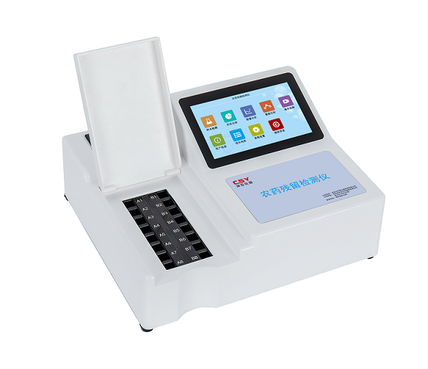 深芬儀器CSY系列安卓版農(nóng)藥殘留快速檢測儀可同時快速檢測多個樣品中的有機磷和氨基甲酸脂類農(nóng)藥殘留含量,設(shè)備采用7寸彩色觸摸屏、安卓9.0操作系統(tǒng)、4G全網(wǎng)通訊、Wifi、網(wǎng)口、USB通訊、滿足農(nóng)藥殘留檢測數(shù)據(jù)的上傳、接收農(nóng)藥殘留檢測任務(wù)、實時通訊、數(shù)據(jù)導(dǎo)出等功能,農(nóng)藥殘留快速檢測儀根據(jù)農(nóng)業(yè)標準方法(NY/T 448-2001)和國家標準(GB/T5009.199-2003)中的酶抑制率法,嚴格遵循《GB/T5009.199-2003蔬菜中有機磷和氨基甲酸酯類農(nóng)藥殘留快速檢測方法標準》中的規(guī)定對蔬菜中有機磷和氨基甲酸酯類農(nóng)藥殘留的快速檢測;可廣泛應(yīng)用于各級蔬菜檢測中心、農(nóng)貿(mào)市場、超市、環(huán)保機構(gòu)、蔬菜種植基地、飯店、車載及實驗室等食品安全檢測與監(jiān)控場所等單位對果蔬中農(nóng)藥殘留的檢測。
