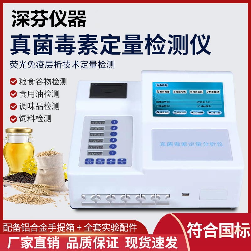 深芬儀器CSY-YG701真菌毒素快速檢測儀能夠快速定量檢測糧食、飼料、谷物、食用油、調(diào)味品等食品中T2毒素、嘔吐毒素、赭曲霉毒素、伏馬毒素、玉米赤霉烯酮,適用于糧油監(jiān)測中心、糧油飼料生產(chǎn)加工、食品加工貿(mào)易、畜禽養(yǎng)殖戶自查、質(zhì)監(jiān)部門用于市場快速篩查等,能夠快速準確定量檢測出食品中的真菌毒素含量,杜絕真菌毒素超標食物流入市場。